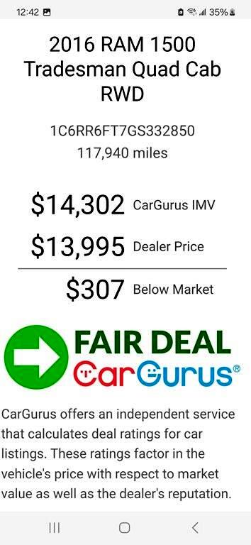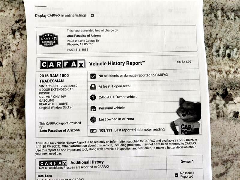 Vehicle Inquiry for 2016 RAM 1500 Tradesman Quad Cab 2WD