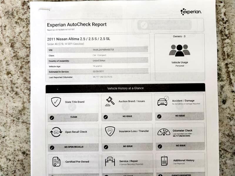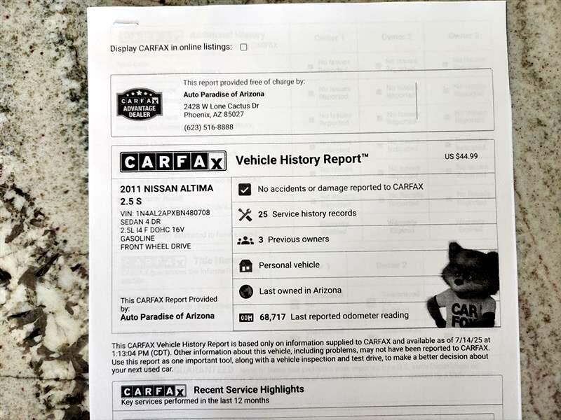 Vehicle Inquiry for 2011 Nissan Altima 2.5 S