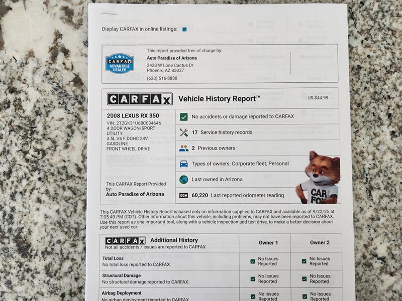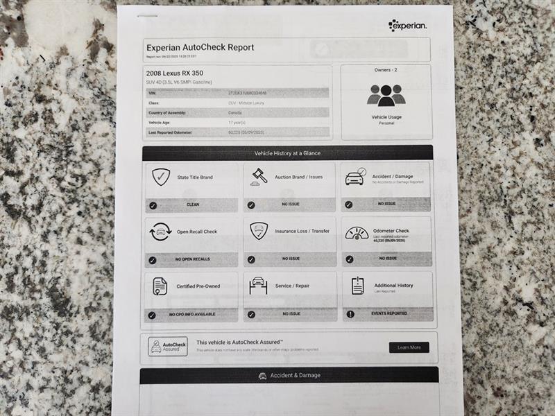 Vehicle Inquiry for 2008 Lexus RX 350 FWD