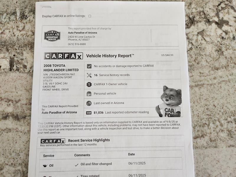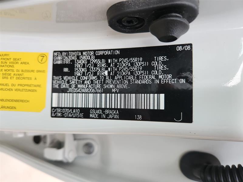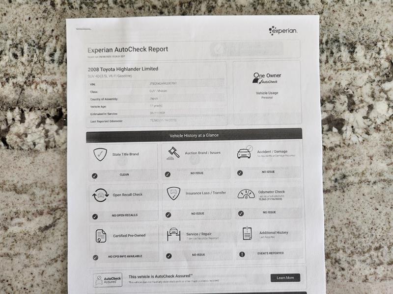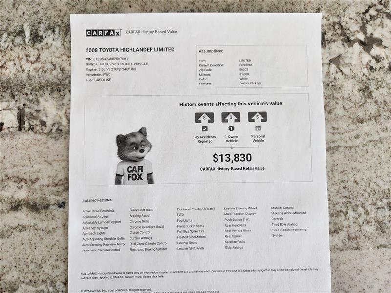 Vehicle Inquiry for 2008 Toyota Highlander Limited 2WD
