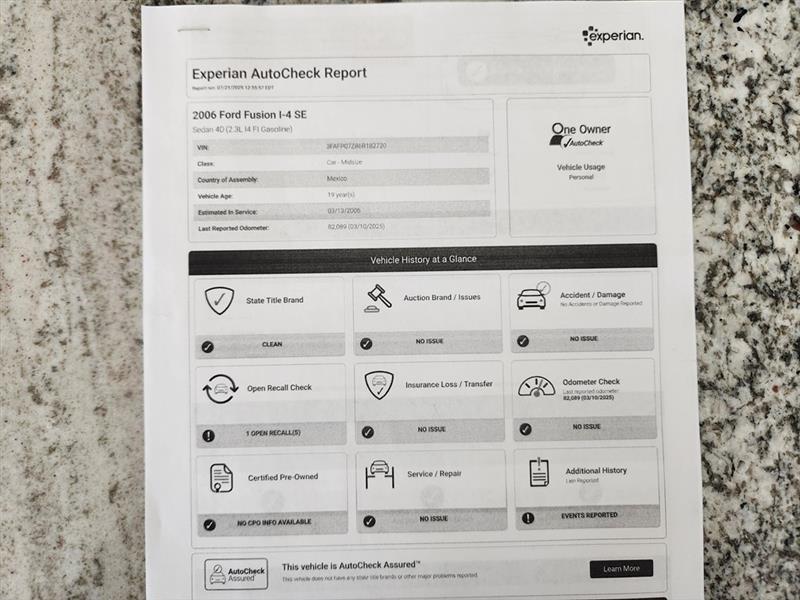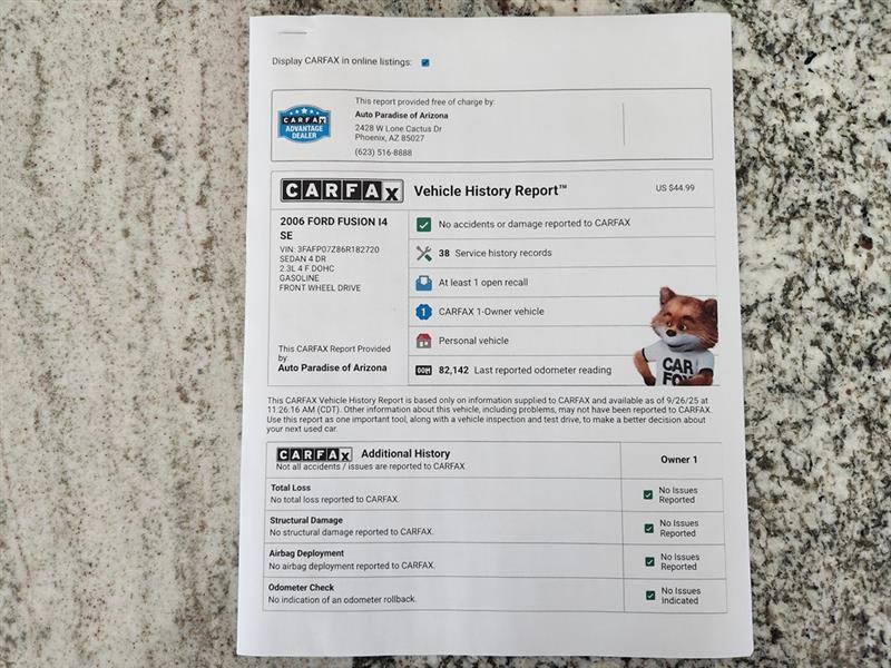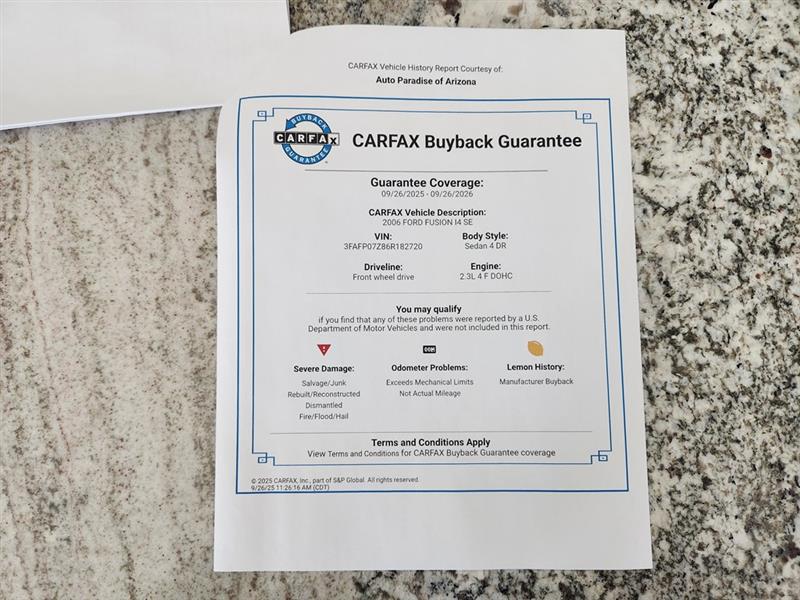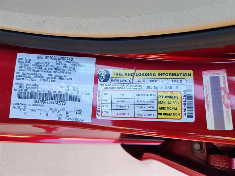 Vehicle Inquiry for 2006 Ford Fusion SE