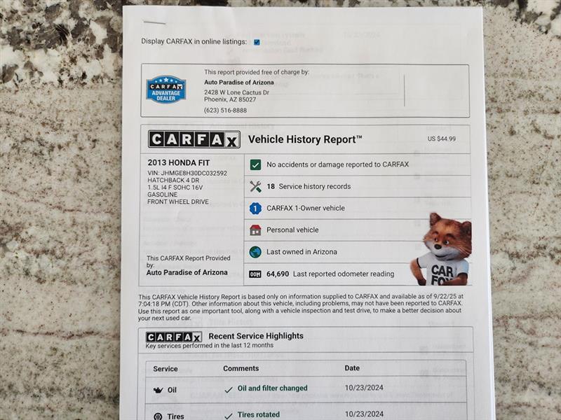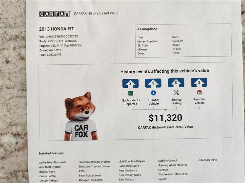 Vehicle Inquiry for 2013 Honda Fit 5-Speed AT