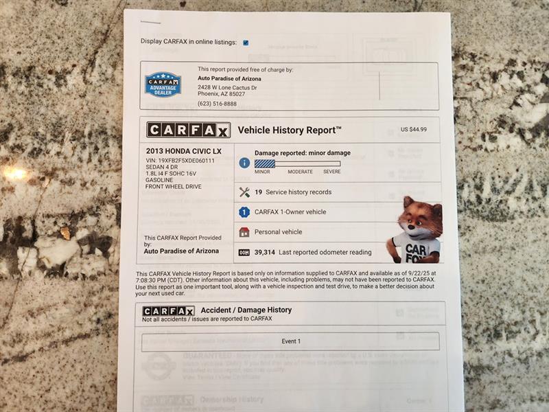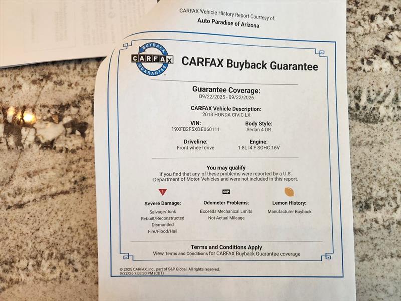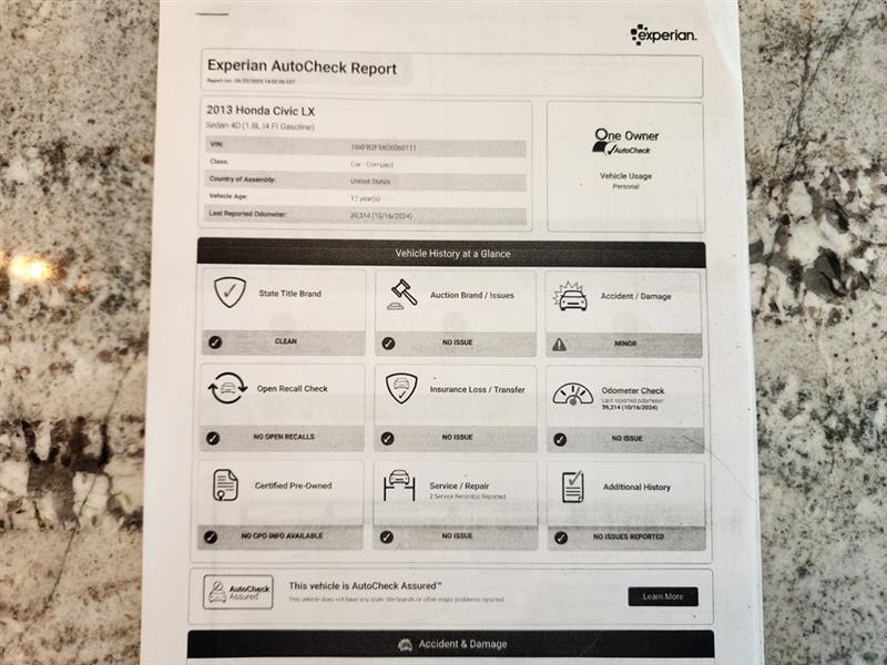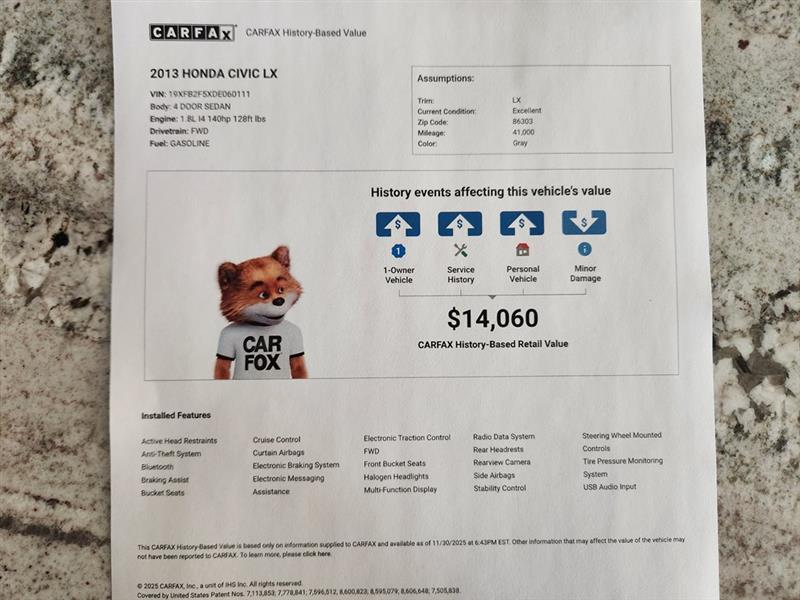 Vehicle Inquiry for 2013 Honda Civic LX sedan